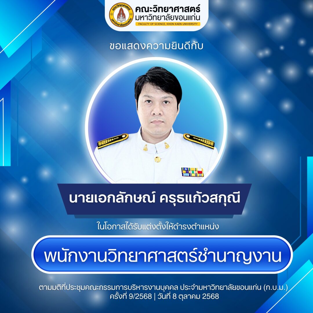 ขอแสดงความยินดีกับบุคลากรที่ได้รับการแต่งตั้งให้ดำรงตำแหน่งทางวิชาการ ตามมติสภามหาวิทยาลัยขอนแก่น ครั้งที่ 10/2568