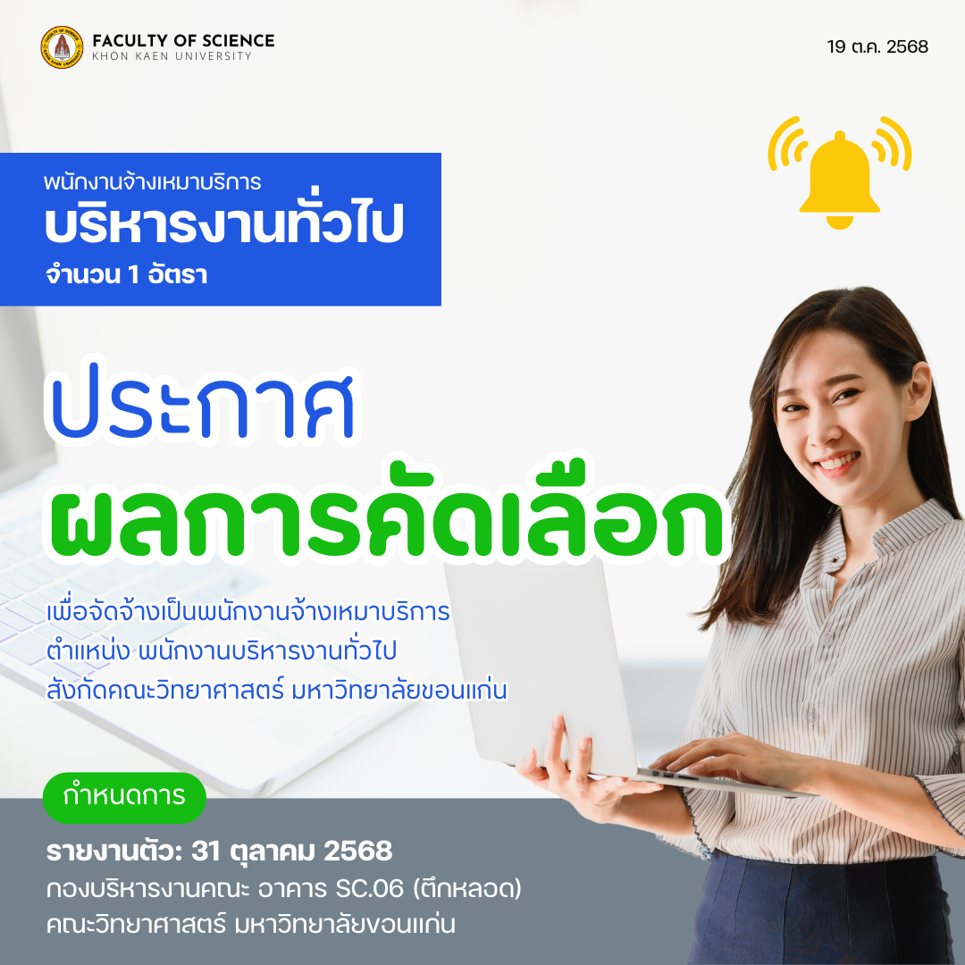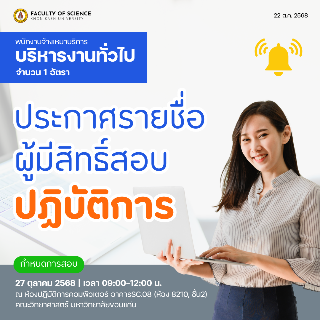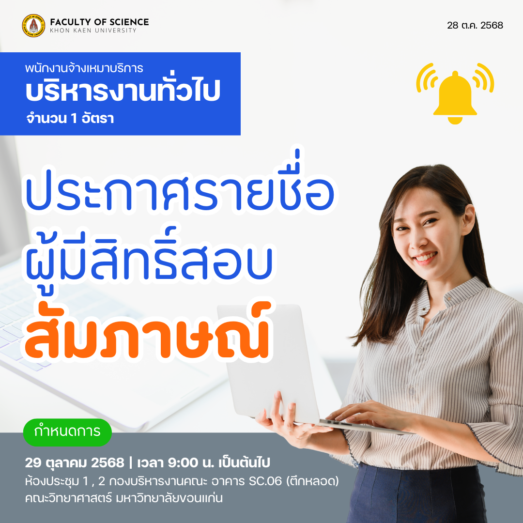 ประกาศรายชื่อผู้มีสิทธิ์สอบสัมภาษณ์ ตําแหน่งพนักงานวิทยาศาสตร์ (เลขประจำตำแหน่ง 55399) สังกัดคณะวิทยาศาสตร์
