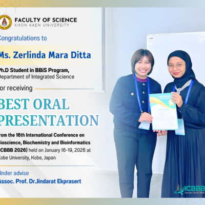 KKU Science PhD Student Wins Best Presentation Award at ICBBB 2026 in Japan