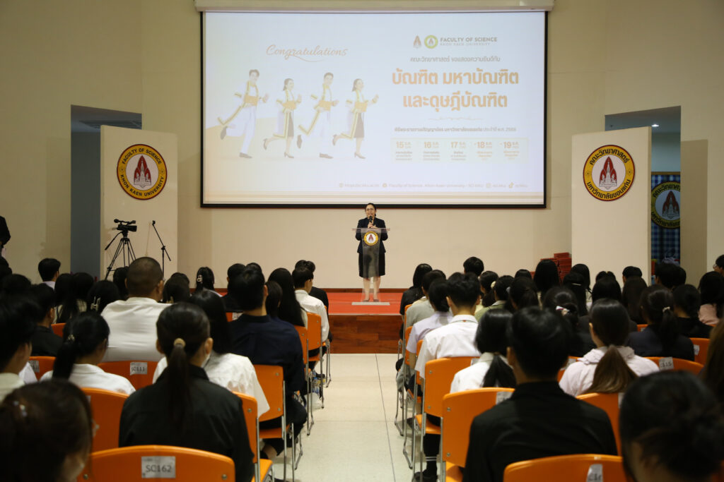 วันที่ 15 ธันวาคม 2568 เวลา 11.30-13.00 น. คณะวิทยาศาสตร์ มหาวิทยาลัยขอนแก่น จัดงานแสดงความยินดีกับบัณฑิตผู้สำเร็จการศึกษา ประจำปีการศึกษา 2568 ณ ห้องวิทยวิภาส 1 และลานอเนกประสงค์ชั้น 1 อาคารวิทยวิภาส โดยมีผู้บริหาร คณาจารย์ คณะกรรมการ บุคลากร นักศึกษา และบัณฑิตผู้สำเร็จการศึกษาเข้าร่วมกิจกรรมกว่า 525 คน