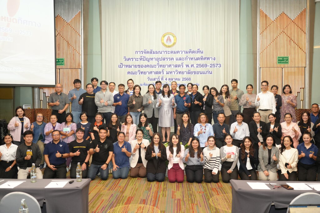 วันที่ 4 ตุลาคม 2568 เวลา 09.00-16.00 น.คณะวิทยาศาสตร์ มหาวิทยาลัยขอนแก่น จัดการสัมมนาระดมความคิดเห็น วิเคราะห์ปัญหาอุปสรรค และกำหนดทิศทาง เป้าหมายของคณะวิทยาศาสตร์ พ.ศ. 2569-2573 ณ ห้องออคิดบอลรูม ชั้น 2 โรงแรมพูลแมน ขอนแก่น ราชา ออคิด โดยมีบุคลากรทั้งประเภทวิชาการและประเภทสนับสนุนเข้าร่วมกว่า 60 คน