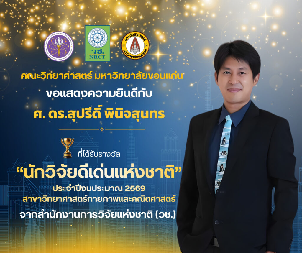 คณะวิทยาศาสตร์ มหาวิทยาลัยขอนแก่น ขอแสดงความยินดีกับบุคลากรและศิษย์เก่าของคณะฯ ที่คว้ารางวัลจากสำนักงานการวิจัยแห่งชาติ (วช.) ประจำปีงบประมาณ 2569 ดังนี้