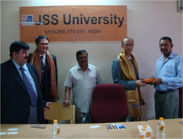 จากการที่มหาวิทยาลัยขอนแก่นได้ร่วมลงนามบันทึกความเข้าใจระหว่างมหาวิทยาลัยขอนแก่น และ Jagadguru Sri Shivarathreeswara University (JSSU) ประเทศอินเดีย เมื่อวันที่ 5 สิงหาคม 2553 นั้น ได้มีการกำหนดกรอบของความร่วมมือเบื้องต้นอย่างไม่เป็นทางการ ประกอบด้วย การแลกเปลี่ยนอาจารย์ การพัฒนาหลักสูตรร่วมกันโดยมหาวิทยาลัยขอนแก่นจะพัฒนาหลักสูตรวิทยาศาสตรดุษฎีบัณฑิต สาขาวิชาวิทยาศาสตร์สิ่งแวดล้อม ในขณะที่ JSSU ต้องการพัฒนาหลักสูตรวิทยาศาสตรมหาบัณฑิต สาขาวิชาวิทยาศาสตรสิ่งแวดล้อม เน้นด้านน้ำและสุขภาพ และพัฒนาด้านการวิจัยเน้นเรื่องของจุลินทรีย์จากน้ำที่อาจจะเกี่ยวข้องกับการเปลี่ยนแปลงภูมิอากาศของโลก และเพื่อให้ความร่วมมือนี้เป็นไปอย่างมีประสิทธิภาพ และประสบความสำเร็จตามข้อตกลงความร่วมมือเบื้องต้นที่ได้ลงนามร่วมกัน คณะทำงานของมหาวิทยาลัยขอนแก่นจึงได้เดินทางไปศึกษาดูงาน แลกเปลี่ยนเรียนรู้ข้อมูล และประชุม ร่วมกับ JSSU ณ JSSU เมืองไมซอร์ ประเทศอินเดีย ในระหว่างวันที่ 3-7 ตุลาคม 2553 โดยคณะทำงานจากคณะวิทยาศาสตร์ มหาวิทยาลัยขอนแก่น จำนวน 4 คน ซึ่งประกอบด้วย รศ.ดร. ศักดา ดาดวง รองคณบดีฝ่ายวิจัยและวิเทศสัมพันธ์ ผศ.ดร. เสาวนิต ทองพิมพ์ หัวหน้าภาควิชาจุลชีววิทยา ผศ.ดร.พิสิฏฐ์ เจริญสุดใจ หัวหน้าภาควิชาวิทยาศาสตร์สิ่งแวดล้อม และ อาจารย์วิรงรอง มงคลธรรม อาจารย์ประจำภาควิชาวิทยาศาสตร์สิ่งแวดล้อม
