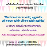 ขอเชิญรับฟังสัมมนาหัวข้อ "Membrane-induced folding triggers the anti-cancer activity of beta-hairpin peptides"