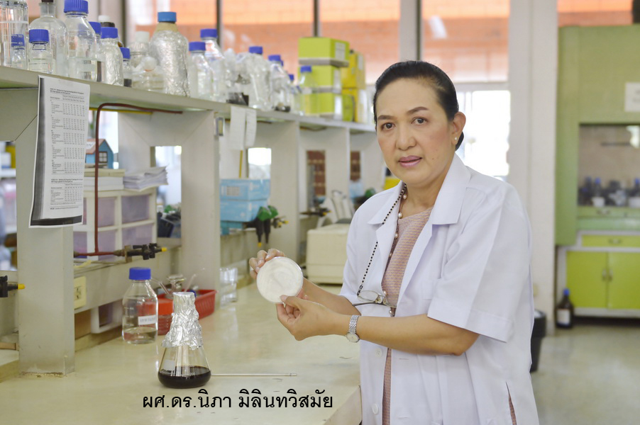 ผศ.ดร.นิภา มิลินทวิสมัย ภาควิชาชีวเคมี คณะวิทยาศาสตร์ เผยกับสื่อมวลชน ค้นพบยีสต์สายพันธุ์ใหม่ เติบโตแบ่งเซลล์เร็ว ผลิตเอทานอลสูงมาก