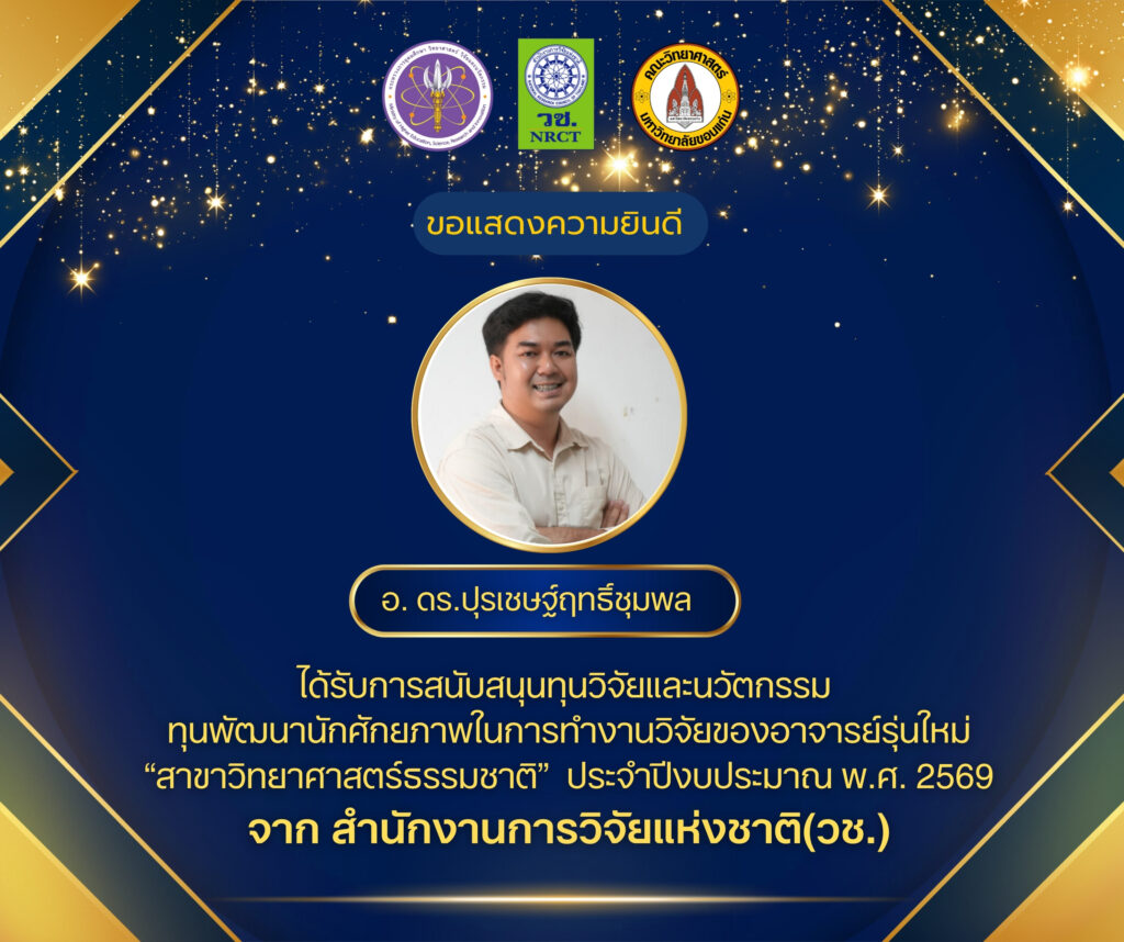 คณะวิทยาศาสตร์ ขอแสดงความยินดีกับบุคลากรประเภทวิชาการ ที่ได้รับทุนสนับสนุนจากสำนักงานการวิจัยแห่งชาติ(วช.)