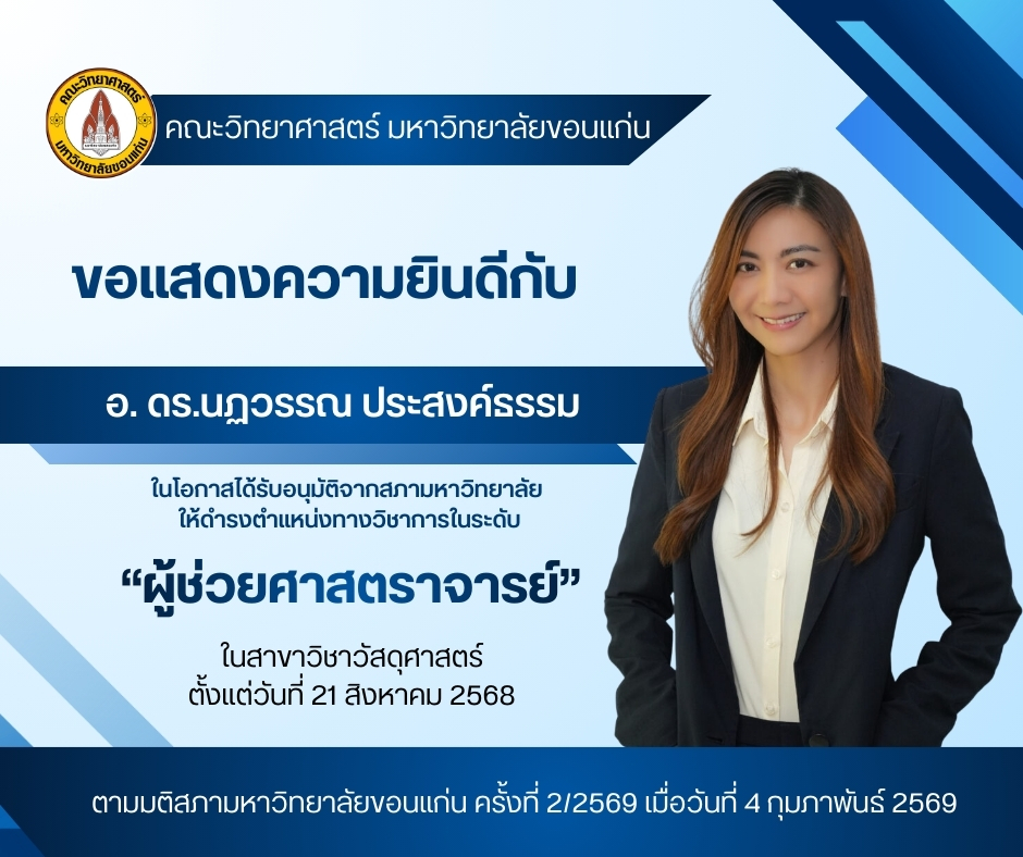 คณะวิทยาศาสตร์ มหาวิทยาลัยขอนแก่น ขอแสดงความยินดีกับ อ. ดร.นรรฎธวรรณ ประสงค์ธรรม อาจารย์ประจำสาขาวิชาฟิสิกส์