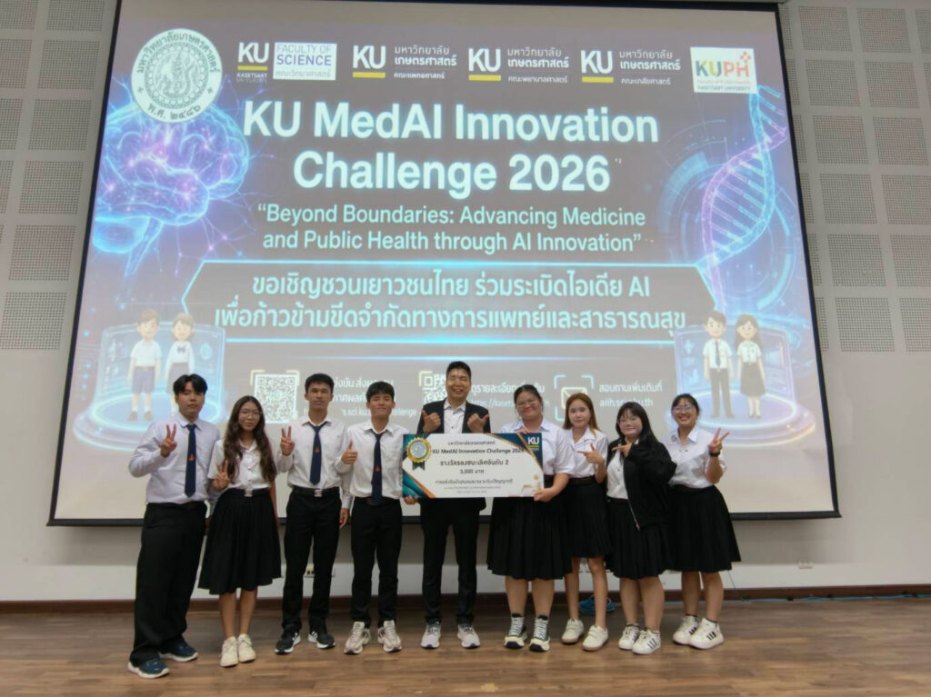 คณะวิทยาศาสตร์ มหาวิทยาลัยขอนแก่น ขอแสดงความชื่นชมและยกย่องในศักยภาพของนักศึกษาชั้นปีที่ 3 สาขาวิชาสถิติ ทั้ง 4 ทีม ที่สร้างชื่อเสียงให้กับคณะฯ ในการแข่งขัน “KU MedAI Innovation Challenge 2026″ เมื่อวันเสาร์ที่ 7 มีนาคม พ.ศ. 2569 ณ มหาวิทยาลัยเกษตรศาสตร์ ซึ่งเป็นการรวมตัวของยอดฝีมือด้าน AI ทางการแพทย์