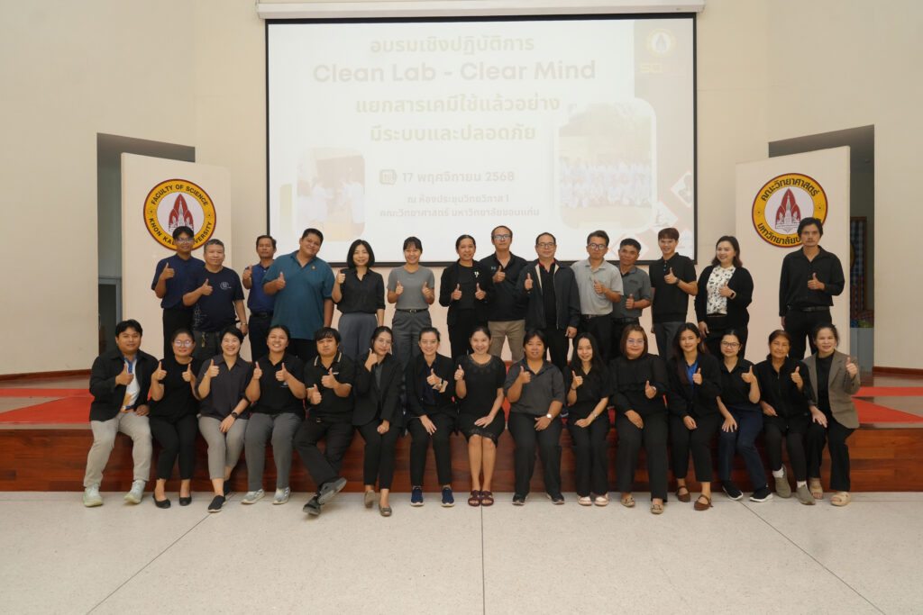 วันที่ 17 พฤศจิกายน 2568 เวลา 09.00-16.00 น. คณะวิทยาศาสตร์ มหาวิทยาลัยขอนแก่น จัดโครงการอบรมเชิงปฏิบัติการ “Clean Lab – Clear Mind : แยกสารเคมีใช้แล้วอย่างมีระบบและปลอดภัย” ณ ห้องประชุมวิทยวิภาส 1 ชั้น 1 อาคารวิทยวิภาส โดยมี รศ. ดร.รจนา บุระคำ รองคณบดีฝ่ายวิจัย เป็นประธาน การอบรมมุ่งเน้นการสร้างความรู้และทักษะในการแยกประเภทสารเคมีใช้แล้วอย่างถูกต้อง กลุ่มเป้าหมายคือ นักวิชาการวิทยาศาสตร์ พนักงานวิทยาศาสตร์ และเจ้าหน้าที่ประจำห้องปฏิบัติการ โดยใช้รูปแบบการจำแนกประเภทของเสียห้องปฏิบัติการที่ใช้สารเคมีของมหาวิทยาลัยขอนแก่น เพื่อยกระดับมาตรฐานความปลอดภัยในห้องปฏิบัติการทางวิทยาศาสตร์อย่างถูกต้อง